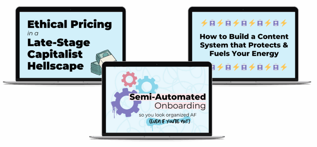 💃🏻 You’ve been in business for a bit, but something’s not quite working. Maybe you’re doing business in a way that works for your brain, but you’re not making enough money. Maybe you’re making decent money, but the way you’re doing it is making your brain itch. OR maybe things are working well enough, but you can’t figure out how to take it to the next level without burning yourself out or doing what the “gurus” say.